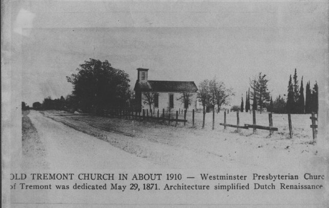 Located just east of Dixon on Tremont Road, consisting of two acres, with a church. The land was donated by the Hyde Family around 1860. The church was built by the Tremont Mite Society. They started construction about 1863, with the completion and dedication in May 1871. This church was known as the Westminster Presbyterian Church of Tremont. As of March 30, 2018, the Tremont Church has been listed on the National Register of Historic Places by the State of California Office of Historic Preservation.